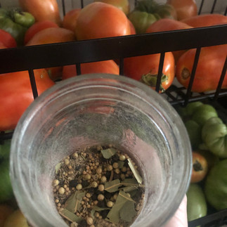 After a few weeks they turn from green to this pale color. We ground them up for arepa fillings, curries and masalas (Indian spice mixes). We use them in pickling spice for yummy dill pickles. Recipe here.